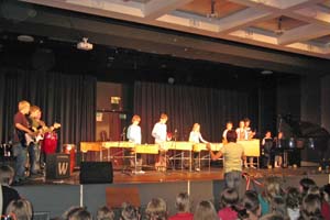 | Es folgte ein Tanz- und Gesangstück, das von den Mädchen der Klasse 5 eingeübt wurde. Die inzwischen über die Grenzen der Schule bekannte Jongliergruppe präsentierte sich zunächst mit einer Diabolo-Nummer und zeigte dann in einem weiteren Auftritt ihr gesamtes Repertoire, das u.a. aus Einrädern, Tüchern, Bällen, Tellern und Bändern besteht | |