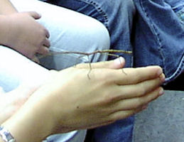 Stabheuschrecke anzufassen, die die Professorin aus dem Käfig herausgeholt hatte.