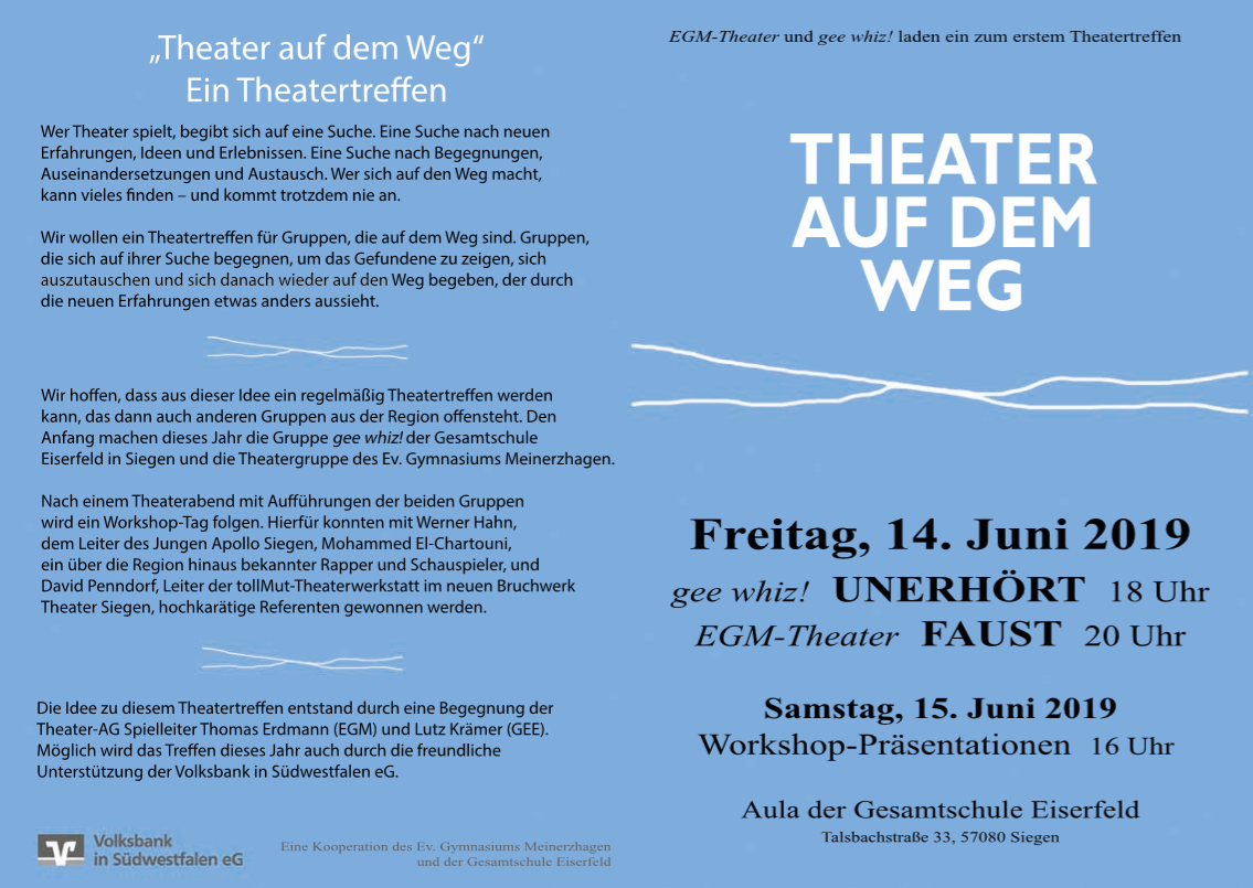 [2019-06-06 KRÄM] Wir freuen uns sehr, das erste Theatertreffen der Gesamtschule Eiserfeld (GEE) und des Evangelischen Gymnasiums Meinerzhagen (EGM) ankündigen zu können!
