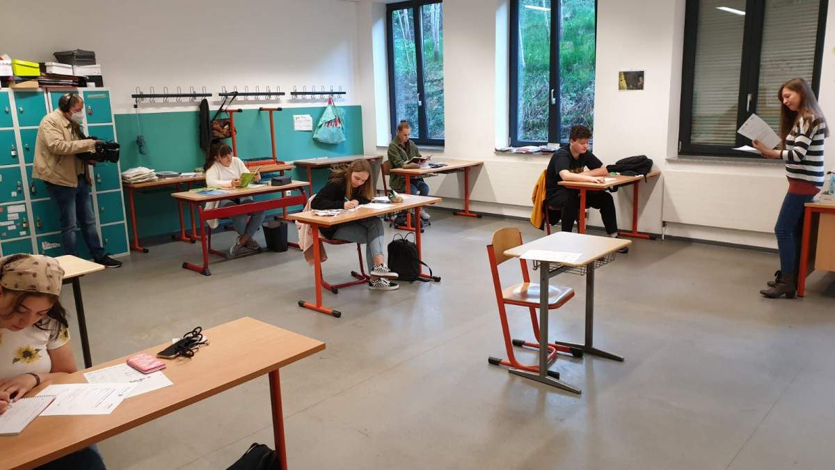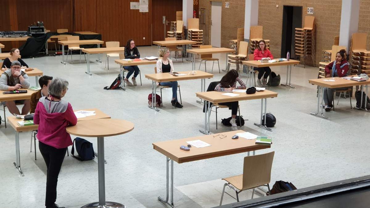 Auch die Schülerinnen empfanden den Unterricht ungewöhnlich: „Da unsere Crashwoche weggefallen ist und die letzten Wochen des eigenständigen Lernens sehr chaotisch und nicht immer produktiv waren, war es hilfreich das Angebot nutzen zu können, besonders in Fächern wie Mathe. Der Unterricht war ungewöhnlich. Die Kurse waren klein, auf mehrere Räume verteilt und distanziert. Mit seinen üblichen Sitznachbarn konnte man nur kommunizieren in dem man durch den halben Raum schrie. Seinen Lehrer hat man des öfteren aus den Augen verloren, da er von Raum zu Raum wanderte.“