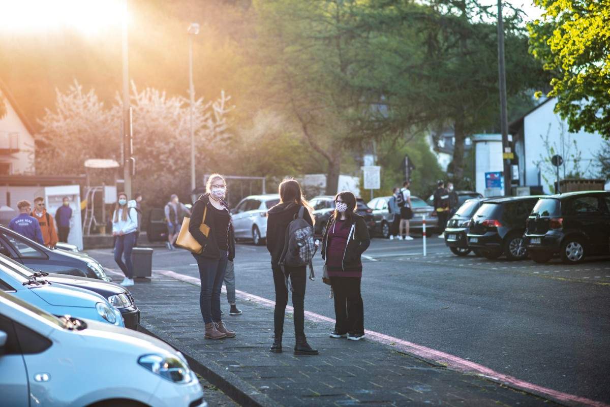 Die beiden Schülerinnen berichteten: „Es fing schon damit an, dass wir erstmalig freie Parkplatzwahl hatten. Trotz diesem Luxus konnte man sich leider nicht vernünftig mit seinen Mitschülern, welche man seit Wochen nicht gesehen hat, am Parkplatz austauschen, da die Masken, der Mindestabstand und die Beobachtung der Lehrer durchaus ungewöhnlich waren.“