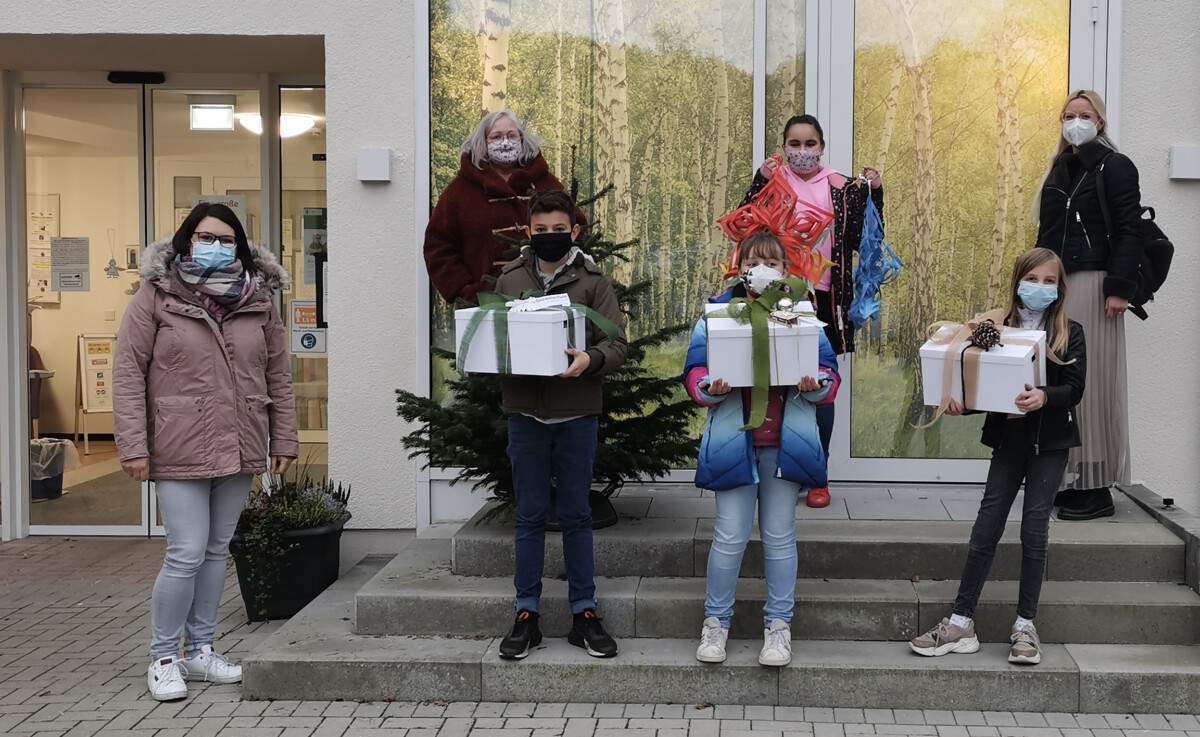 Passend zum Beginn der Adventszeit übergaben die Schüler*innen Sophia, Moritz, Larissa und Mia mit ihrer Klassenlehrerin Stefanie Büdenbender die Kartons mit den gebastelten Weihnachtsgeschenken vor den Türen des Hauses St. Anna. Herr Berres, der Einrichtungsleiter, nahm die Geschenke der Kinder erfreut entgegen, die alsbald den Weg in die Wohnungen und Gemeinschaftsräume fanden und für eine weihnachtliche Atmosphäre im Demenzzentrum sorgten. Als Zeichen der Anerkennung und Dankbarkeit erhielten die Kinder vor Ort Stutenkerle und heißen Kakao. Für die Klassengemeinschaft gab es eine große Schatzkiste mit Süßigkeiten, über die sich alle Kinder freuten.