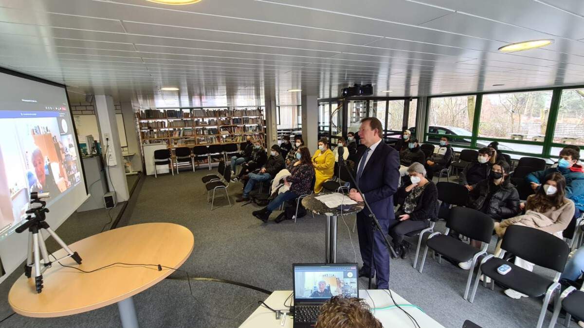 Die SchülerInnen der Oberstufe sowie Steffen Mues und die KollegInnen der Fachschaft Geschichte, hatten am vergangenen Donnerstag die Möglichkeit via Liveschaltung aus Prag dem eindrucksvollen Vortrag der im Jahr 1936 geborenen Zeitzeugin Michaela Vidláková zuzuhören. Hierbei berichtete sie über ihre persönliche Familiengeschichte und Kindheit, welche sie seit Übernahme Tschechiens 1939 im sogenannten Protektorat Böhmen und Mähren durch die Nationalsozialisten in dem Konzentrationslager Theresienstadt ab Dezember 1942 verbrachte.