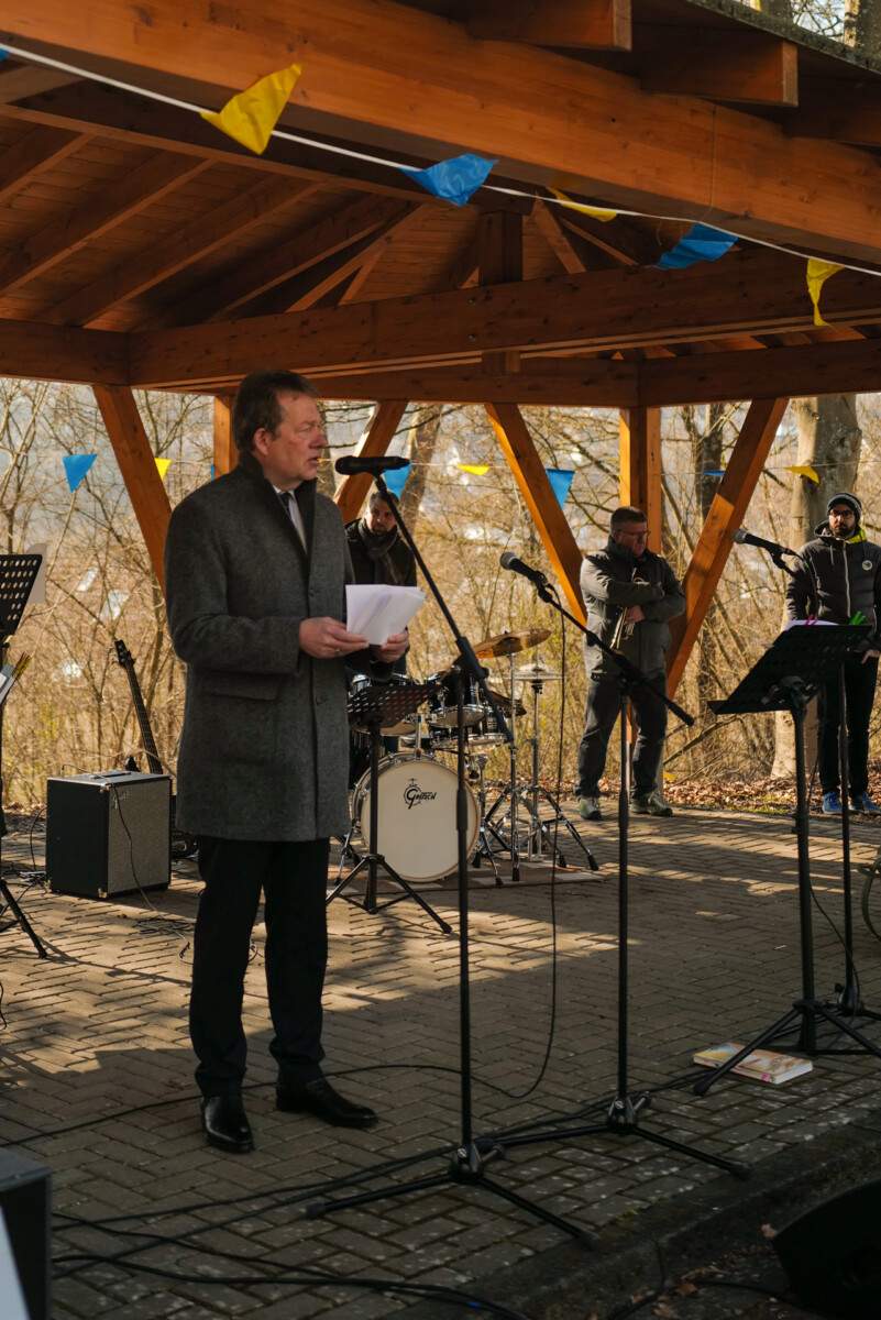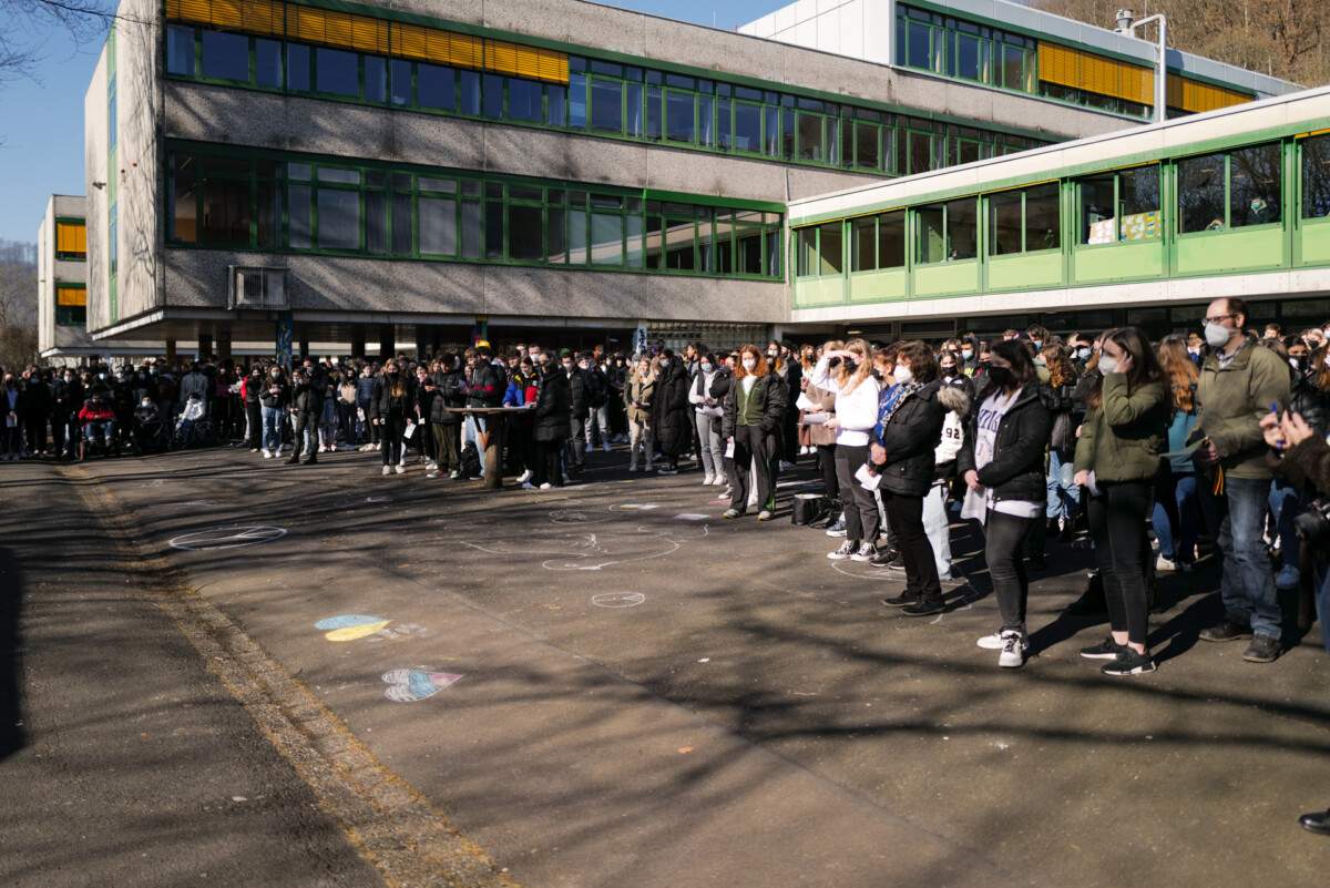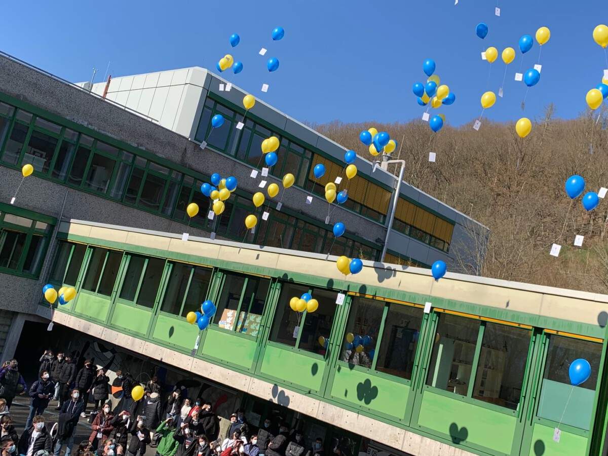 Schüler, Lehrer und geladene Gäste setzen Zeichen der Solidarität mit der Ukraine