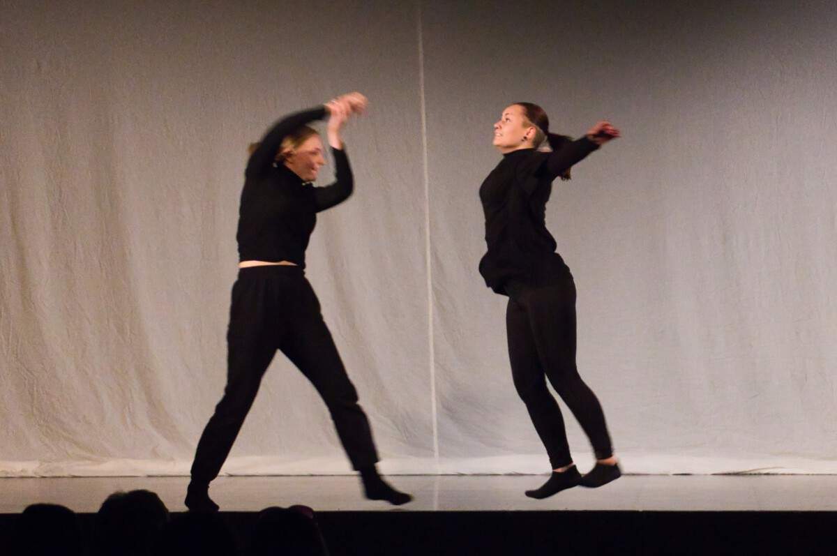Im Stück aufgegriffen wurden auch vergangene Unterrichtsinhalte, wie z.B. Videos aus der „Quarantäne Raumstation“ und das Projekt „Siegen heißt gewinnen“ in Kooperation mit dem Apollo Theater. Fließend und dynamisch verbanden sich Szenen mit allen Spielerinnen, mit Teilgruppen oder auch mit Partnerinnen und Einzeldarbietungen zu einer kurzweiligen Inszenierung.