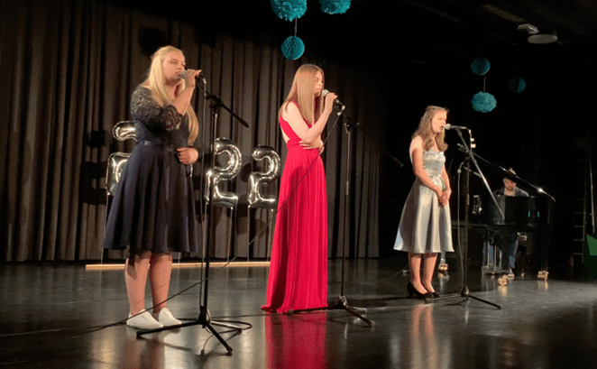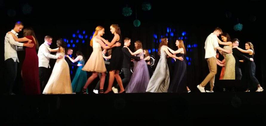 Doch zu den angenehmen Seiten. Schön gestylt in feiner Robe, ließen es sich die diesjährigen Abgängerinnen und Abgänger nicht nehmen ihren Abschluss zu zelebrieren, wenn auch – anders als sonst – getrennt nach Klassen. Jede Klasse feierte sich mit ihrem eigenen kleinen Bühnenprogramm, was auch zur Folge hatte, dass diesmal alles ruhiger war und man eher unter sich war.