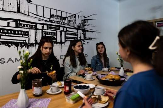 Nach langen 27 Stunden im Flixbus – inklusive einer Stunde Verspätung – kamen die ukrainischen Schüler:innen des Ivan-Trush Gymnasiums, der Partnerschule der GEE, Dienstagmorgen um 07:30h in Siegen an. An der Gesamtschule wurden sie mit einem gemeinsamen Frühstück begrüßt, das nach der langen Fahrt langsam die Lebensgeister wieder erwachen ließ.