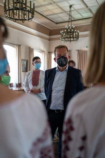Auch Bürgermeister Steffen Mues begrüßte die ukrainischen Austauschschüler:innen am Mittwoch im Siegener Rathaus und war sichtlich ergriffen davon, dass der Krieg die ukrainischen Schüler:innen und ihre zwei Lehrer:innen nicht davon hatte abhalten können, die Freundschaft zwischen der GEE und dem Ivan-Trusch Gymnasium durch einen weiteren Schüleraustausch zu stärken. Er betonte, wie wichtig es – grade auch im Angesicht des Krieges – sei, sich auszutauschen, sich nicht voneinander abzuwenden, sondern zu zeigen: wir lassen uns nicht davon abbringen, unser Leben zu leben und Freundschaften kulturübergreifend zu schließen und ein Zeichen für den Frieden zu setzen.