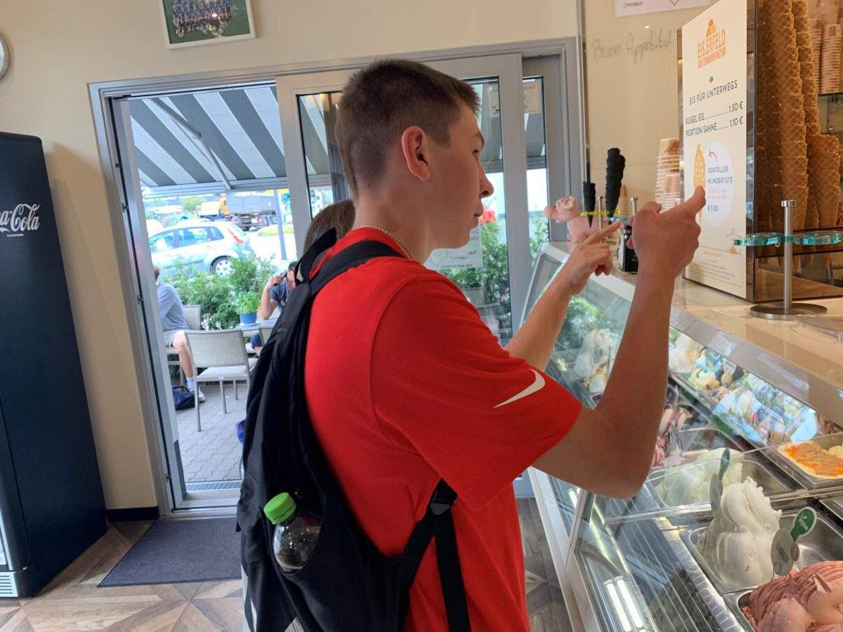 Haselnuss, Erdbeer, Vanille – klar, ein Eis essen ist lecker und leicht, aber ein Eis in einer Fremdsprache bestellen und kaufen, ist für alle Anfänger eine erste sprachliche Hürde. Dies stellten jetzt auch unsere Mitschülerinnen und Mitschüler aus der Ukraine in der Klassenfahrtwoche fest, in der jeden Tag ein Bündel an Vokabeln mit praktischer Anwendung auf dem Programm stand.