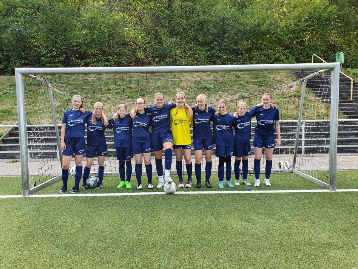 Die diesjährigen Kreismeisterinnen kommen zum wiederholten Mal von der Gesamtschule Eiserfeld. Mit einer guten Teamleistung und sechs Toren von Spielmacherin Hannah Mack setzte sich unsere Mädchenmannschaft am vergangenen Donnerstag gegen insgesamt fünf andere Schulen aus dem Kreis Siegen-Wittgenstein durch.