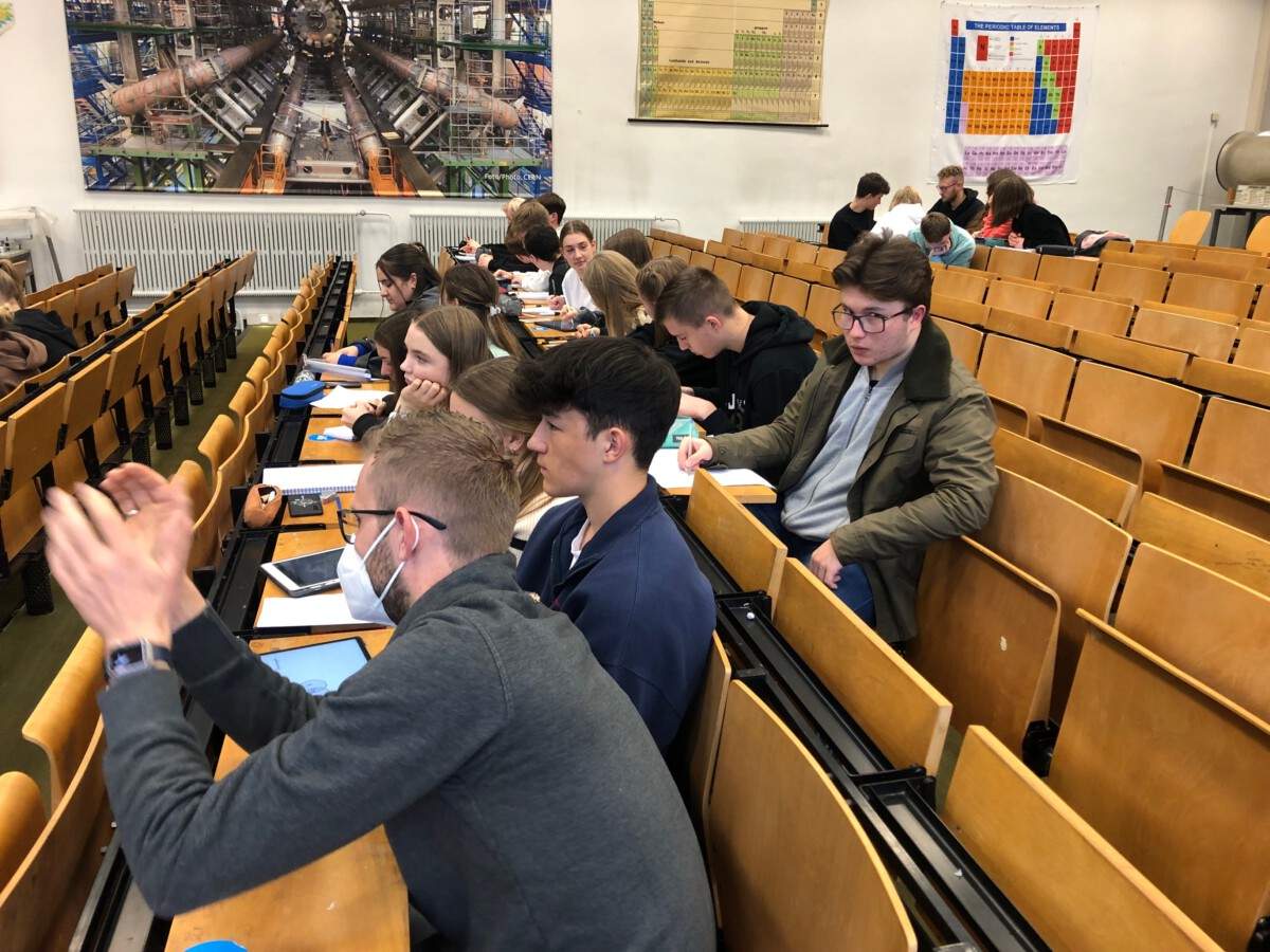 Dass die Schulmathematik aber nur ein kleiner Einblick in die weite Welt der Hochschulmathematik ist, konnten die Schüler in der vergangenen Woche hautnah erfahren. So ging es mit den beiden LK-Lehrern Frau Hoffmann und Herrn Dorweiler morgens an den Emmy-Noether-Campus der Uni Siegen, an dem die Physiker und Mathematiker beheimatet sind. In der Vorlesung „Analysis I“ konnten die beiden Kurse erfahren, wie man einen direkten Beweis führen kann und was es mit dem Spruch „(erste Zahl plus letzte Ziffer und Null dran) + (hinten mal hinten)“ auf sich hat.