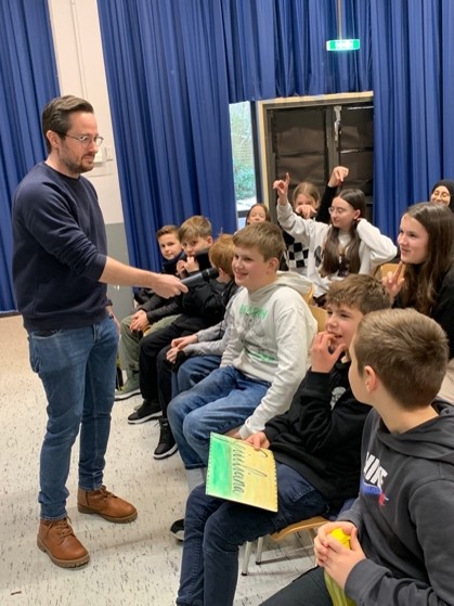 Los ging es mit der Vorstellung eines selbst gewählten Buchs, aus dem ein Abschnitt vorgelesen werden sollte. Drei Minuten gab es hierfür, da war der Moderator und Lehrer der GEE, Phillip Kinkel, schon sehr genau. Zu den beliebten Büchern zählten dabei z.B. „Das magische Baumhaus“ von Mary Pope Osborne, aus dem Felina aus der 6a vorlas, oder „Limonade im Kirschbaum“ von Gerda Raidt, das Sham aus der 6e ausgewählt hatte, um nur einige hier zu nennen.