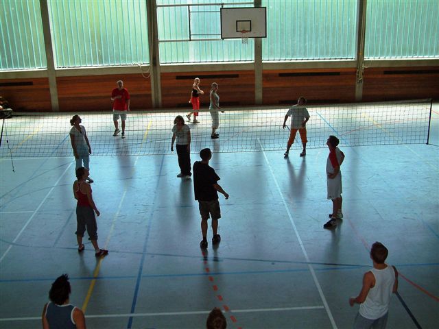 Laune beim Volleyball, Basketball, Badminton oder Step-Aerobic antreten.